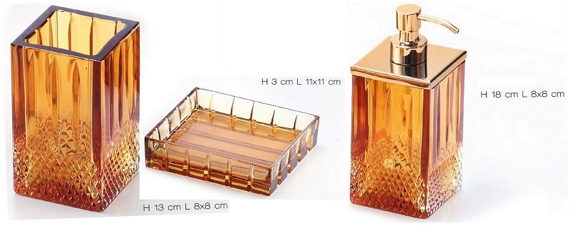 4 ) Dispenser portasapone quadro cristallo ambra molato H 18 cm - L 8 x 8 cm